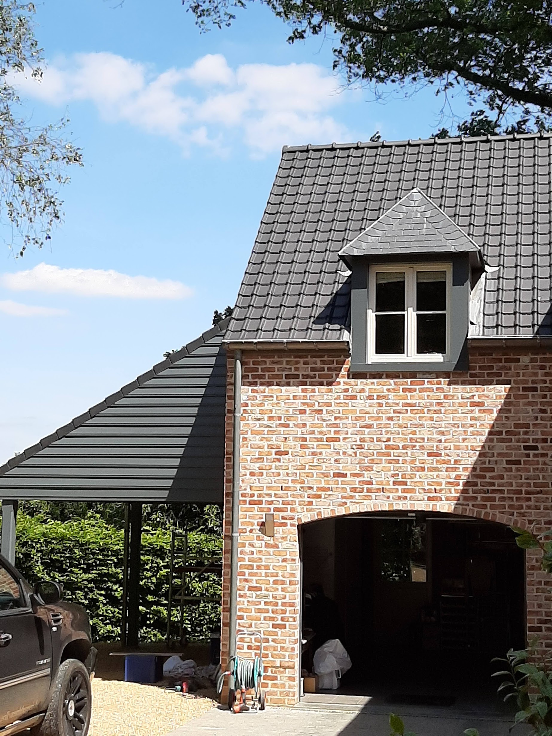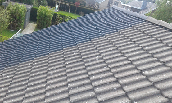 Reinigen en kleuren van een pannendak te Overijse